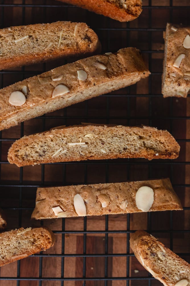 A twice-baked crunchy almond cookie with a golden brown exterior and great flavour.
