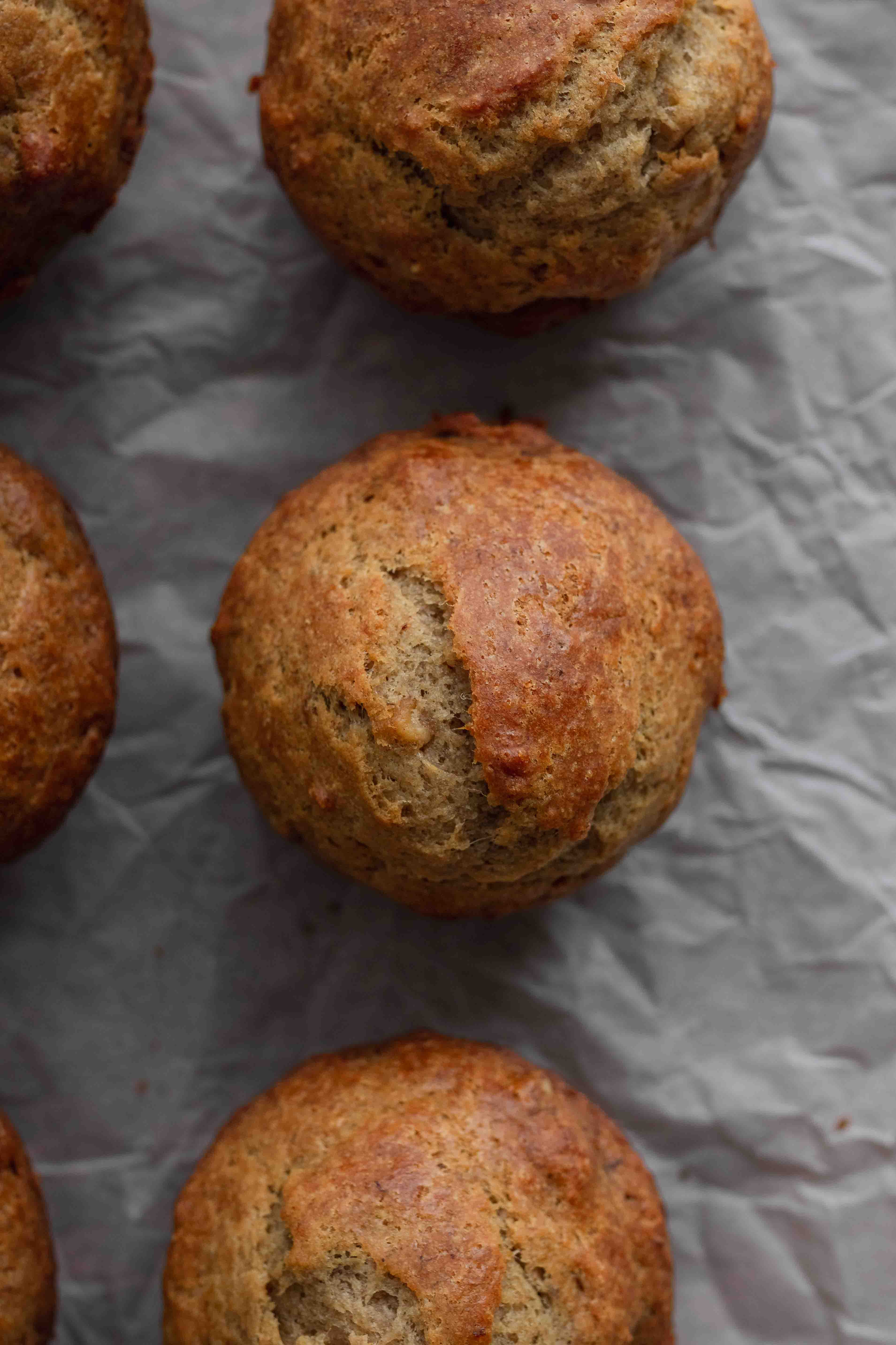 Don’t over-mix the batter. Yes I prefer my muffins less cake-y but that doesn’t mean I want them to be chewy. Mix the batter just as much as needed to combine all the ingredients to avoid developing the gluten too much.
