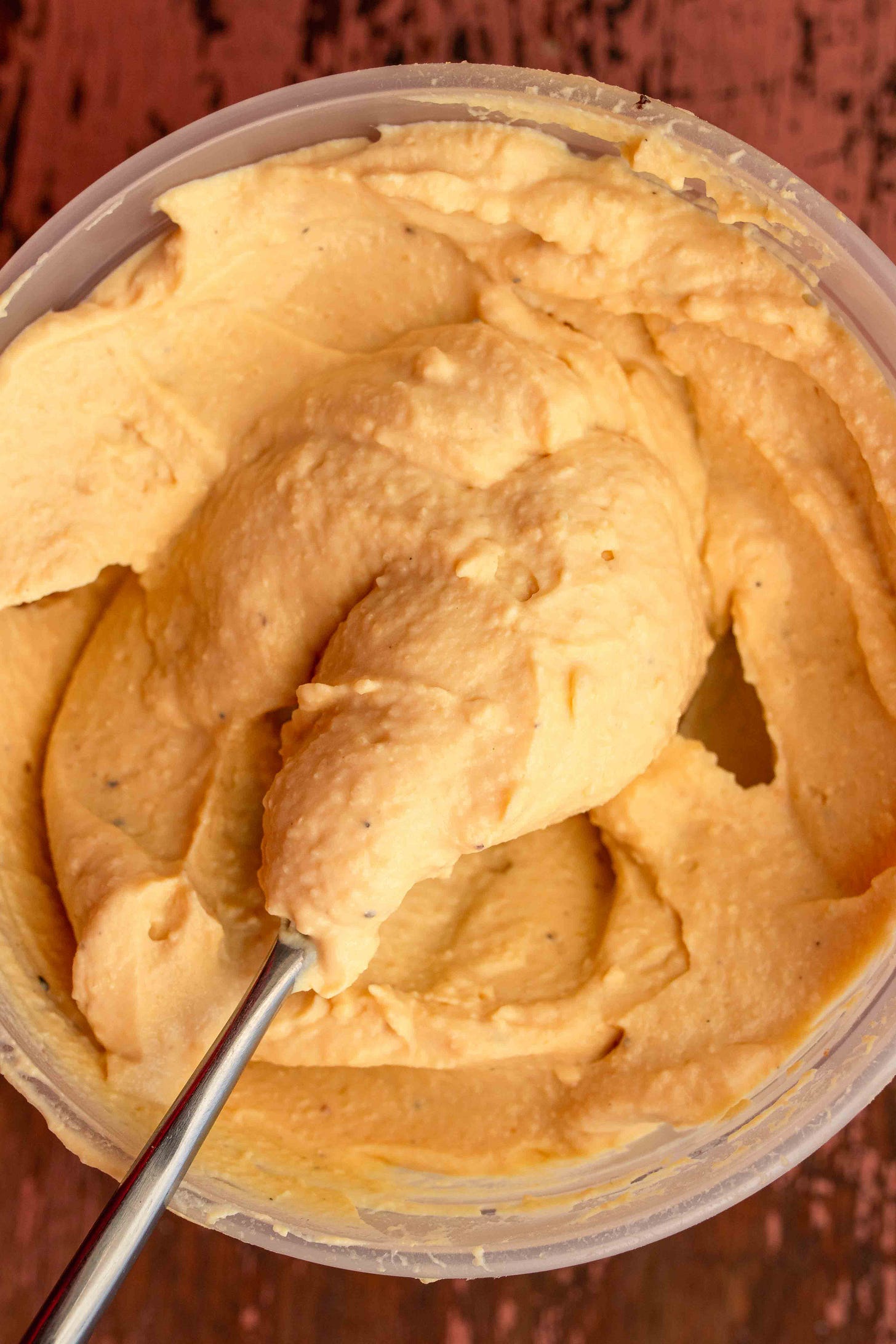 Choose a medium-firm tofu. Silken is too soft and extra-firm would require extra liquid. Medium firm tofu is the perfect consistency to make a deliciously smooth and creamy spread.