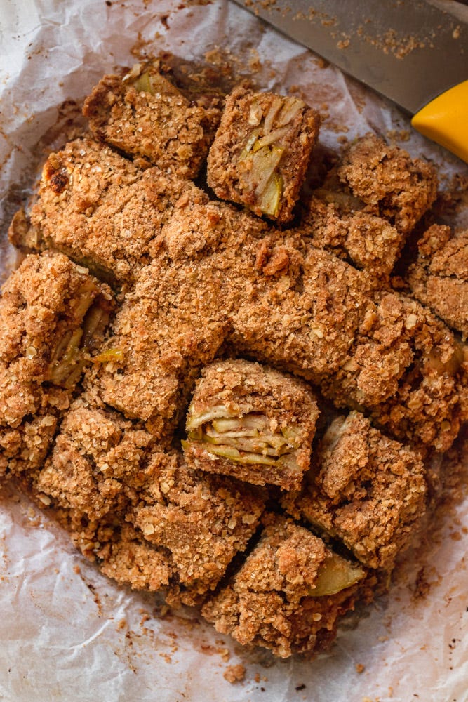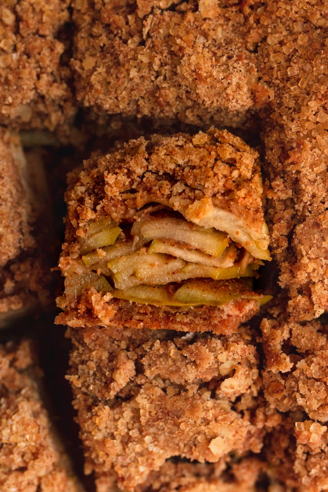 Buttery crumble base and topping filled with a thick layer of apple pie filling makes the perfect bite.
