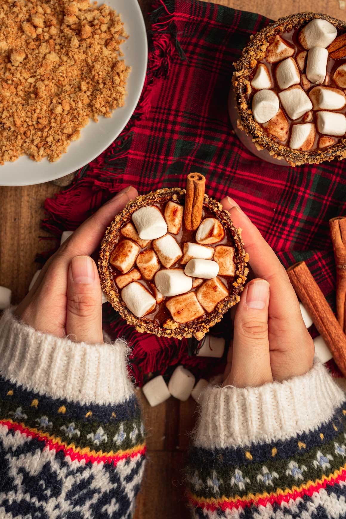 Homemade hot chocolate is easier than you think! Just combine the ingredients in a small saucepan over medium-low heat. Whisk until smooth and just warmed through – you don’t want to bring it to a boil. Pour into your favourite mugs (rim the mugs with chocolate and gingersnaps for an extra fun drinking experience) and enjoy!