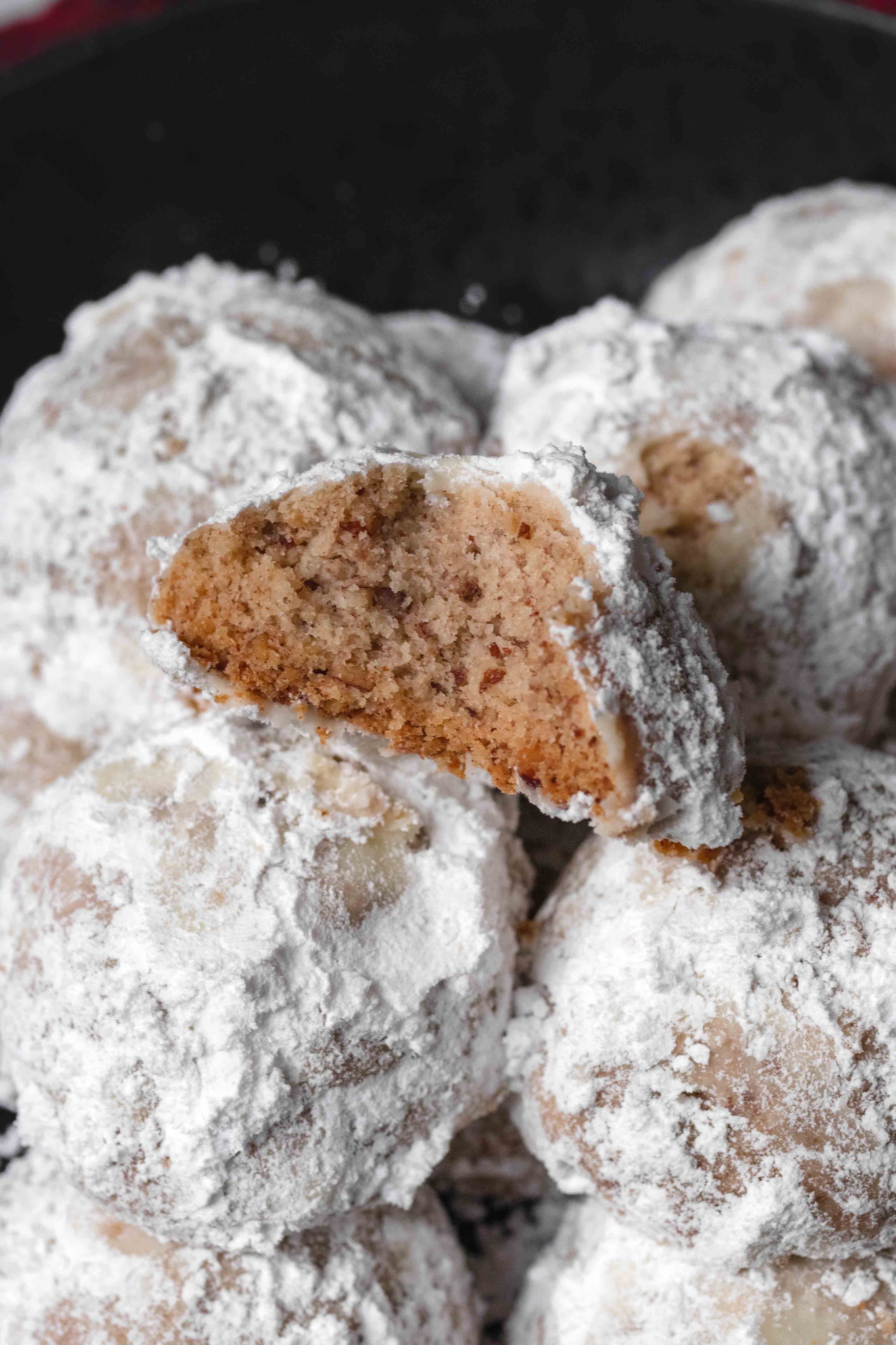 Whip the butter well. The key to the perfect Pecan Puff Cookie is taking your time to beat the butter and sugar together well. The mixture should be lighter in colour and super fluffy before moving on to the next step. If you think it’s done, we recommend beating for an additional 30-60 seconds longer for the perfect texture. Taking your time on this stage help create a butter-y, delicate, and fluffy cookie.