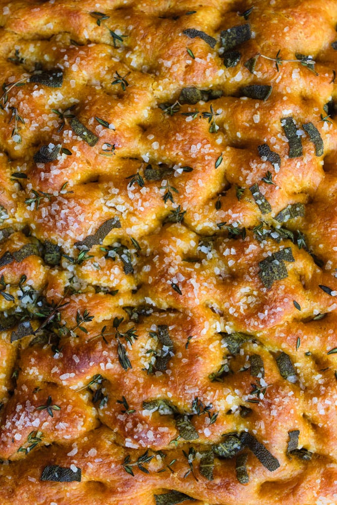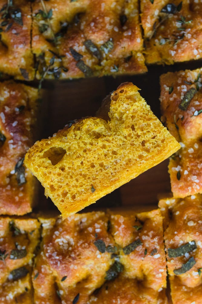 This savoury pumpkin focaccia is loaded with herbs and salt to make an absolutely delicious bite.
