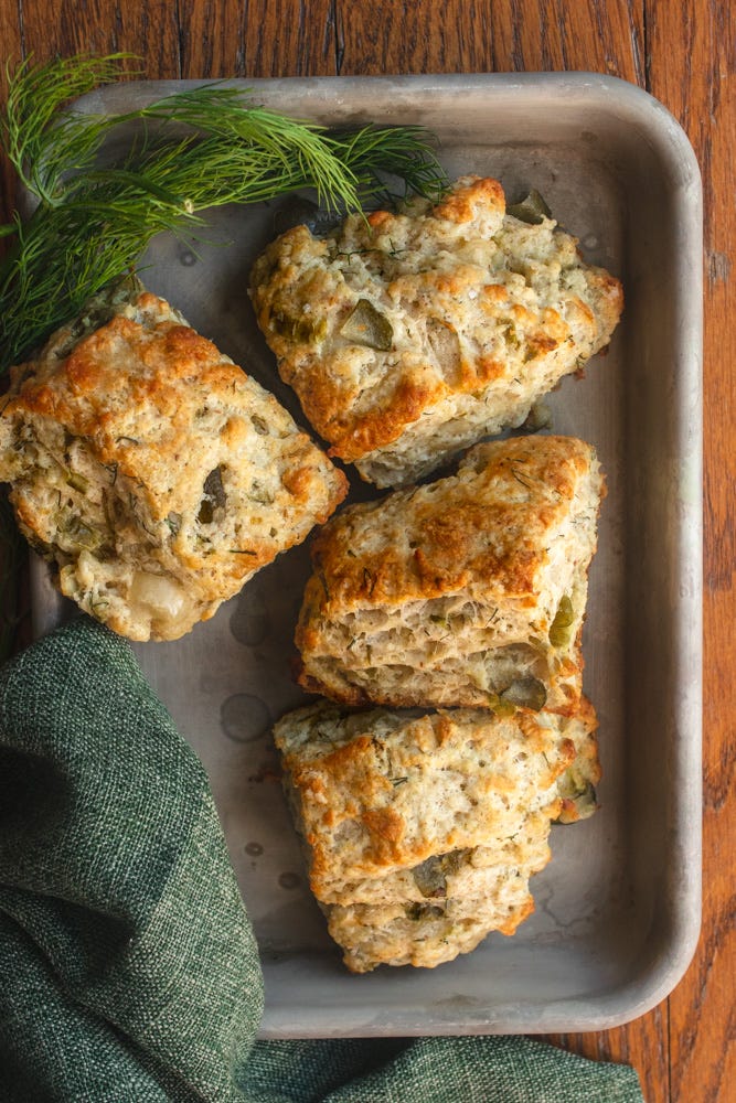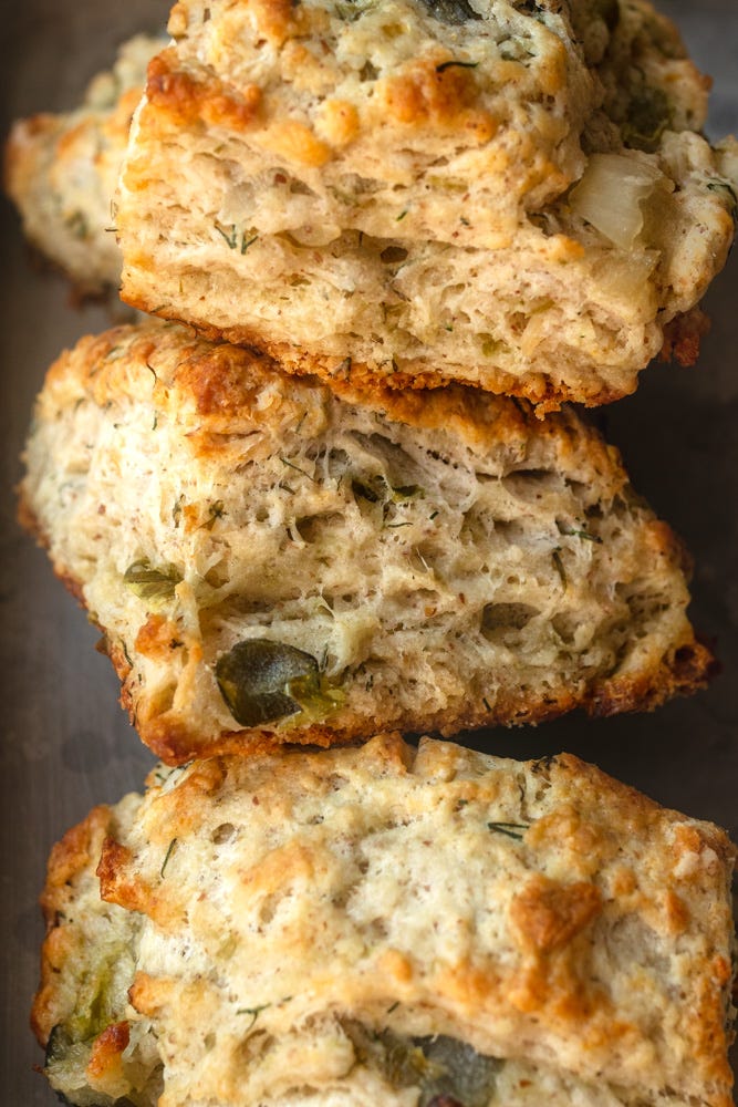 Flaky scones packed with dill pickles and jalapeño to make one of the best savoury scones you’ve ever had.