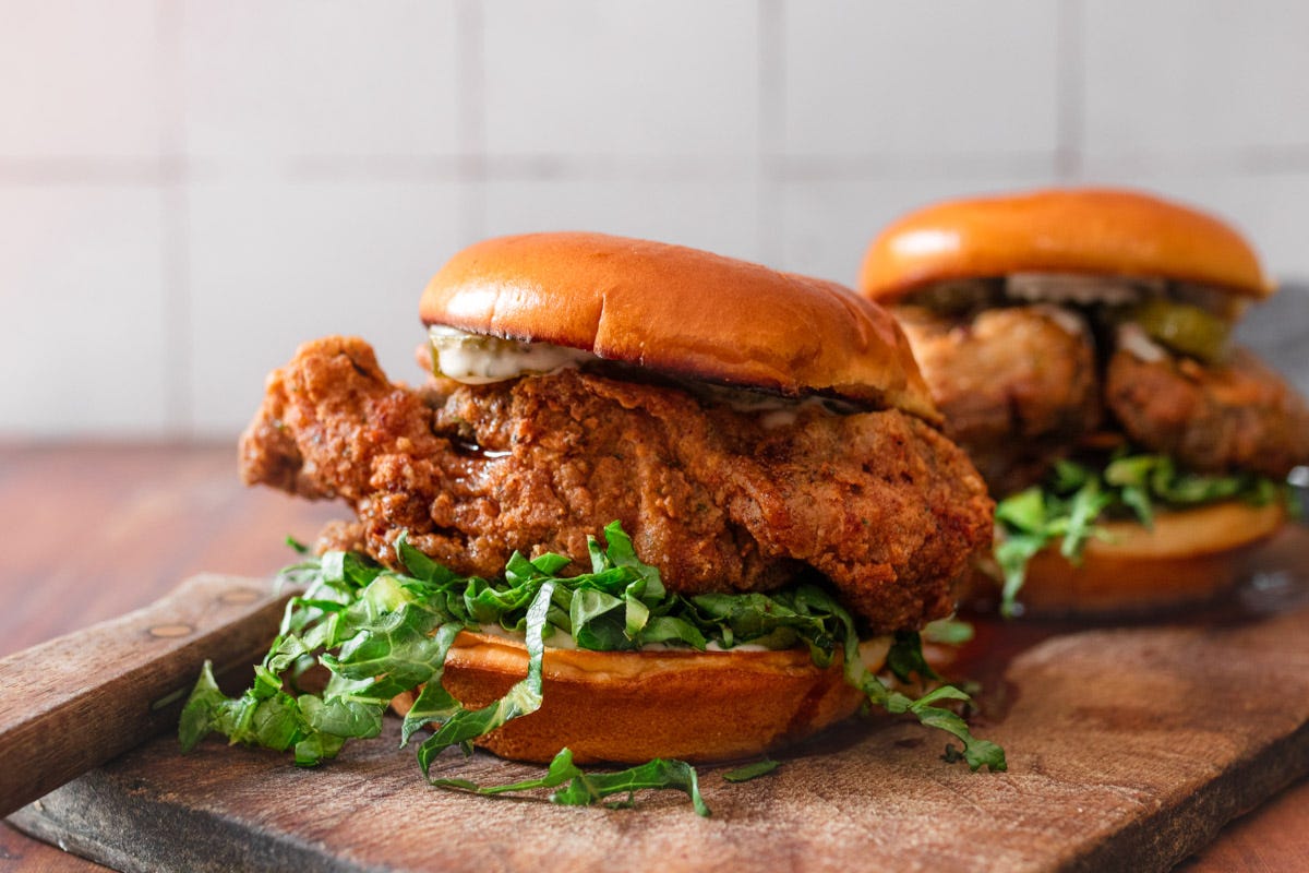 Vegan Buttermilk – We use a vegan buttermilk made with soy milk, apple cider vinegar, hot sauce, and seasonings. It serves a couple different purposes; flavour and tenderizing. We don’t recommend you skipping this.