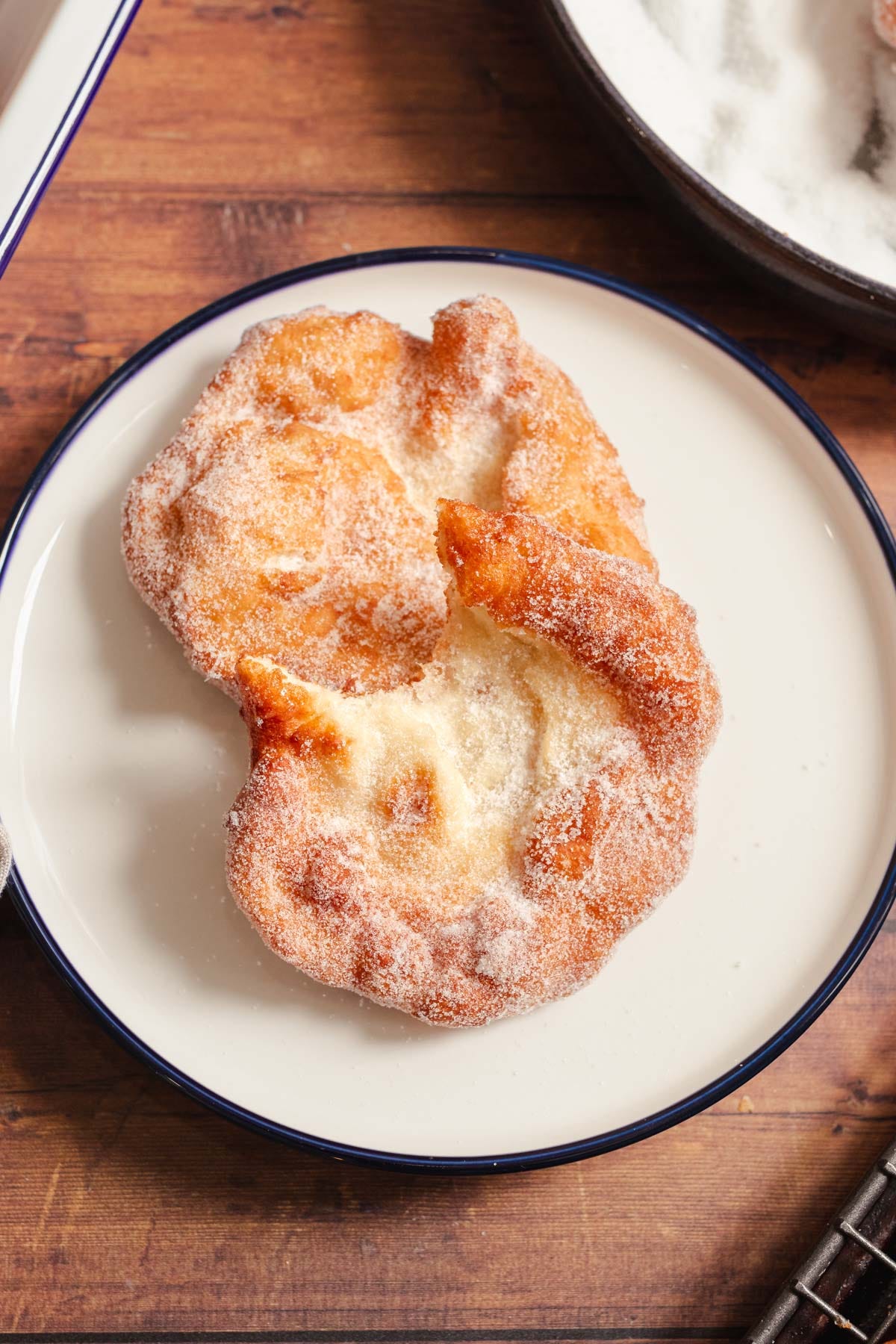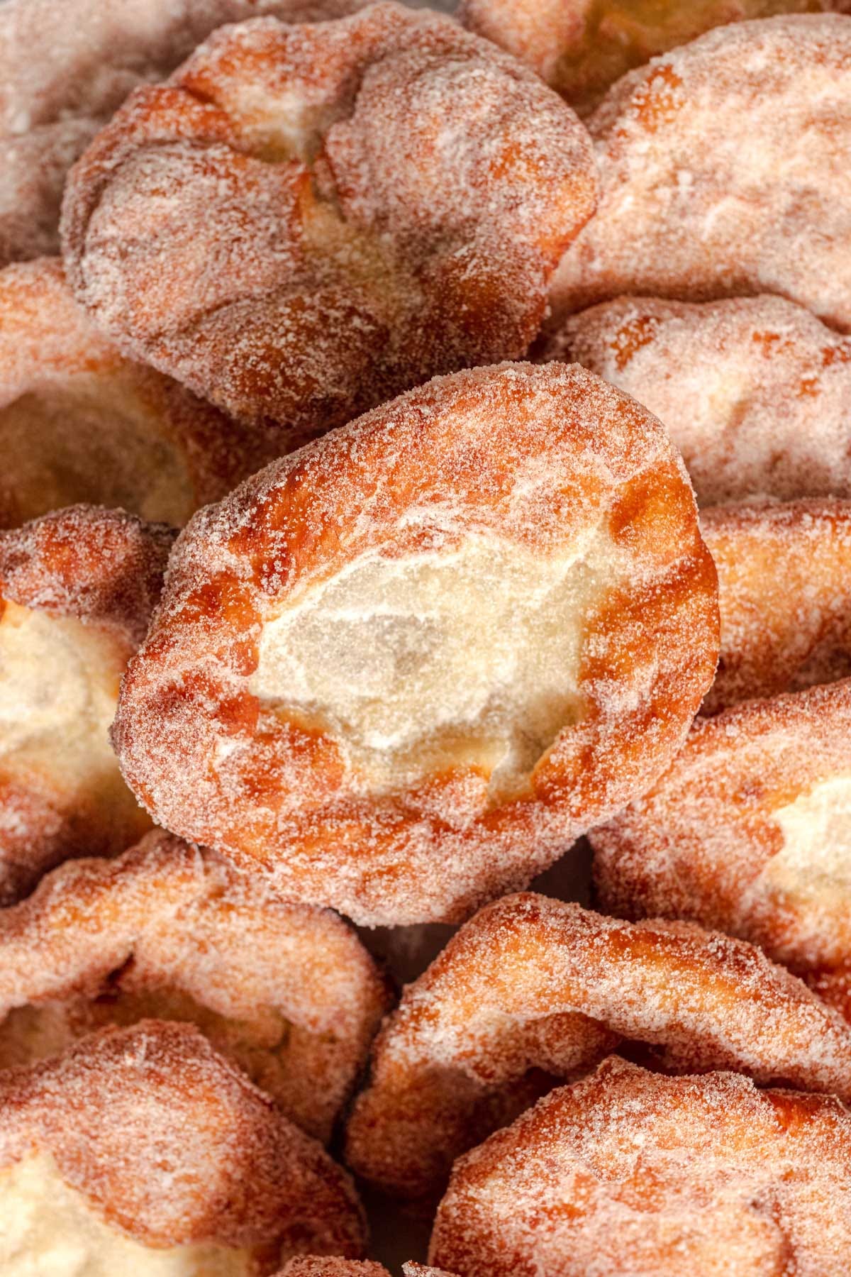 Stretch the dough as thinly as you can without tearing the dough before dropping into the fryer. The thinner you can get it the better results you will get.